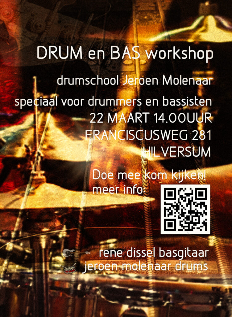 Jeroen en ik hebben al samengespeeld in verschillende toffe projecten. Ook op het conservatorium geef ik al jaren drum- en baslessen met Joost Kroon en Niek de Bruin met speciale aandacht voor samenwerking. De lessen zijn op donderdagen vanaf 17.00uur, andere tijden in overleg.